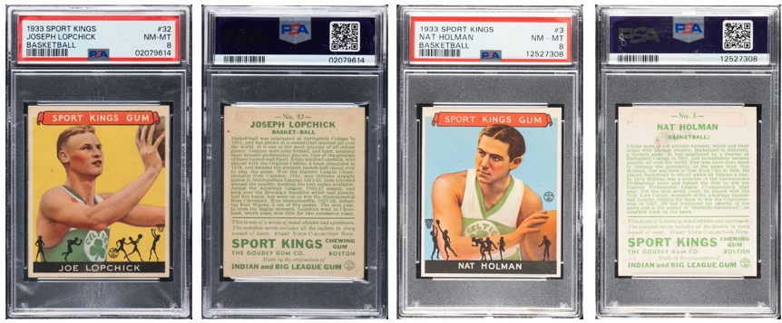 The earliest basketball cards emerged during the 1920s and 1930s, but unlike baseball cards of this era, there are few that have stood the test of time to be among the most popular for today’s collectors. Overall the sport lacked popularity and star power. The top set of the 1930s was the 1933 Goudey Sport Kings set, which featured stars like Nat Holman and Joe Lopchick alongside athletes from other sports.