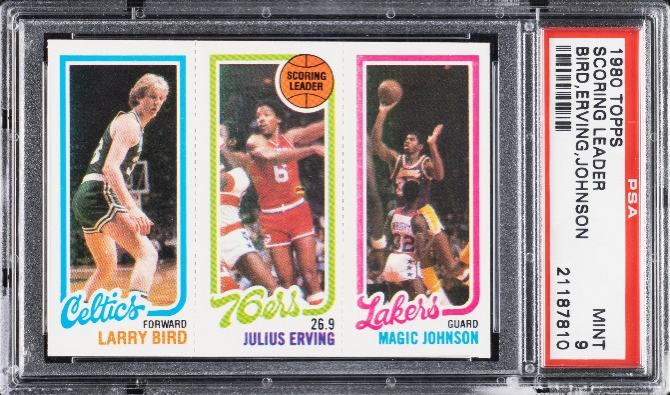 The first card set of the 1980s brought us one of the hobby’s most celebrated rookie cards. The fortuitous rookie pairing of collegiate rivals Earvin “Magic” Johnson and Larry Bird, on a card that also included superstar Julius Erving is the crown jewel of early 1980s basketball cards.