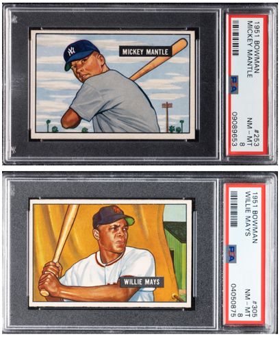 1951 Bowman Mickey Mantle & Willie Mays rookie cards