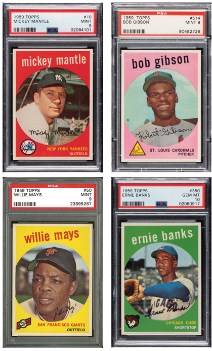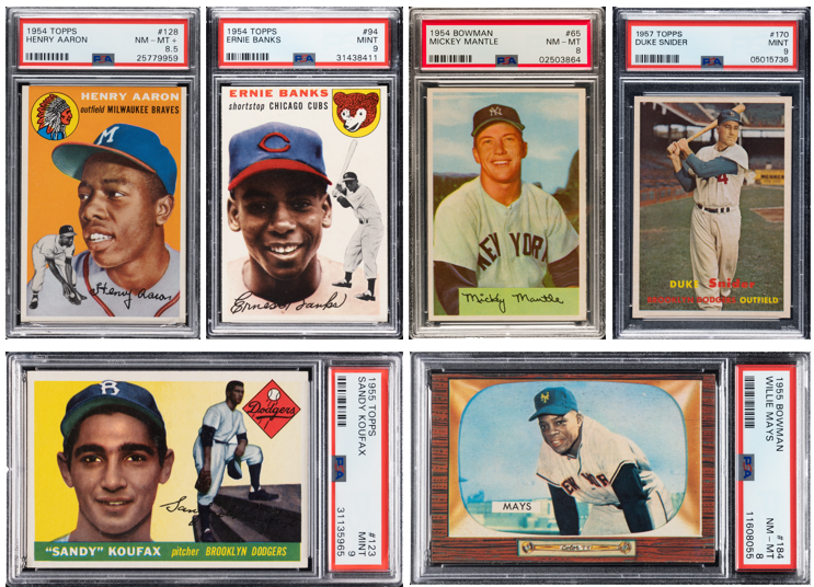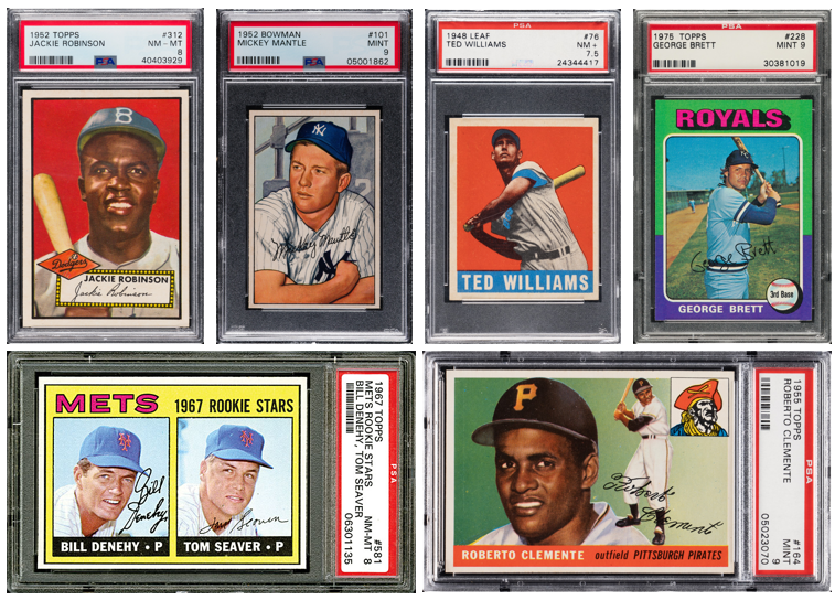 Sample baseball cards spanning the post-war era