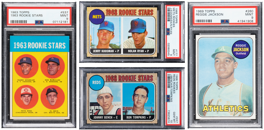 Overall, the caliber of stars making debuts in the1960s dropped off from the previous decade. However, despite not being rookie cards, stars like Mantle, Mays, Aaron and Clemente still had 1960s cards that are still valuable at high grades and are often found in our auctions.