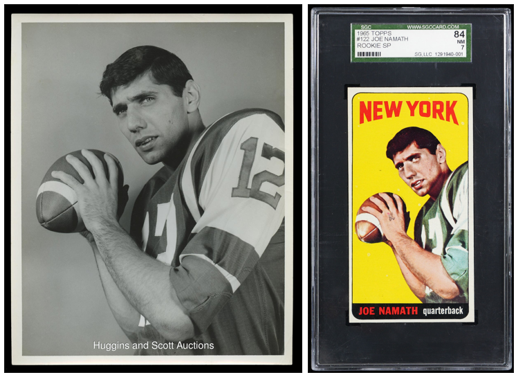 Sports photography is an emerging category in memorabilia, and can include vintage magazines, postcards with or without autographs, or even original photos that were used for classic cards. For example, the Joe Namath original photo used for his iconic 1965 Topps rookie card went for $66,000 in our August 2017 auction.